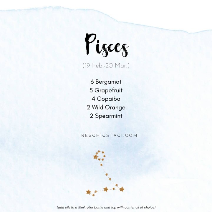 They are ruled by the lymph, liver and feet. They are prone to feet related issues such as bunions, ache and corns. doTERRA Cedarwood oil helps Pisces to overcome soreness, achy feet and water retention. It also helps keep the toes and feet clean and healthy.