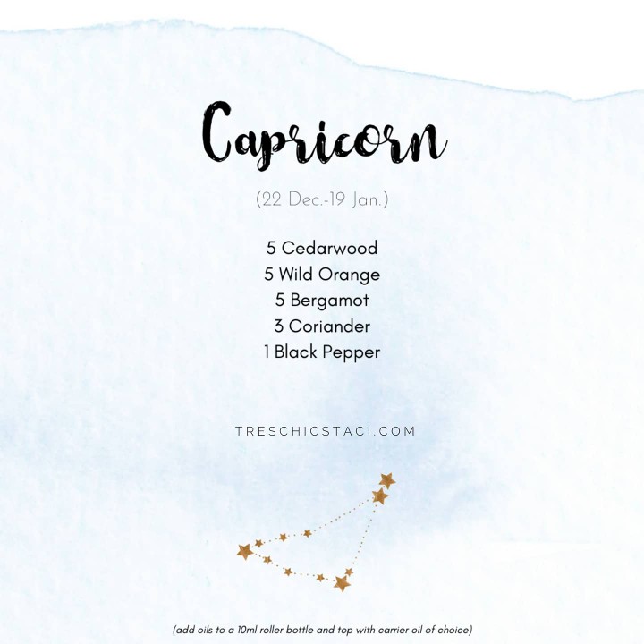 ♑ Capricorn are practical, ambitious, successful, logical, determined, faithful, loyal and have a good sense of humor. They are ruled by the bones, teeth, joints and skin. They are prone to stiff joints, broken bones and skin problems. doTERRA Sandalwood oil can help Capricorns relax, and strengthen bone health and improve the look of skin imperfections.